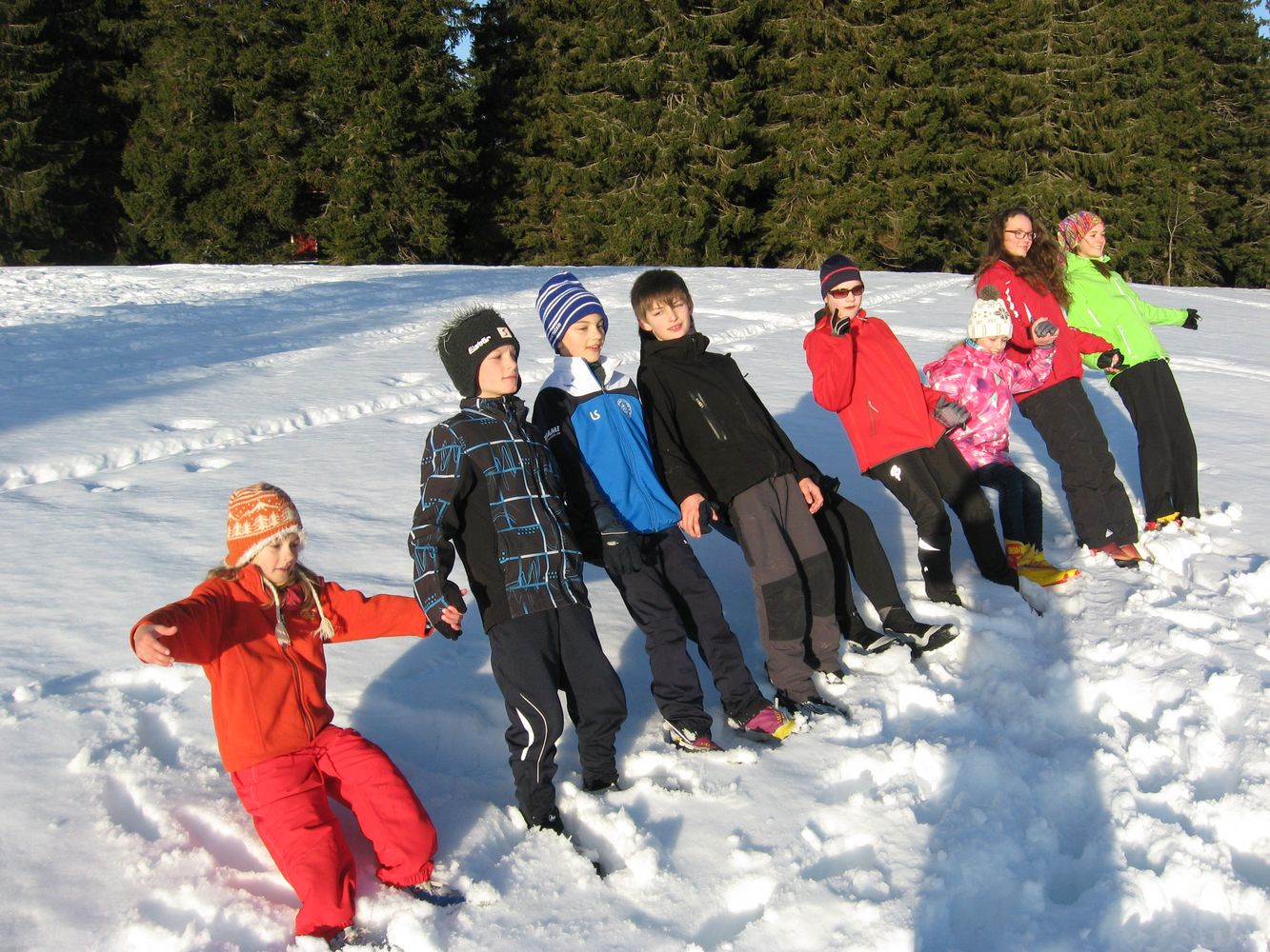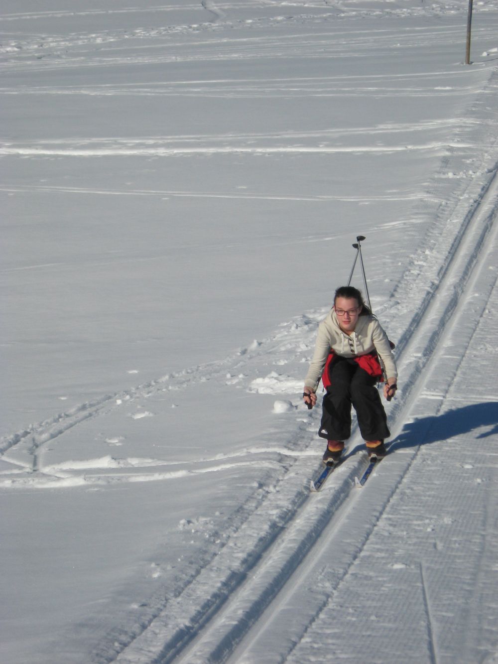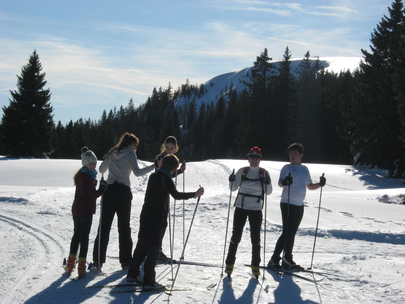 Die nächsten zwei Tage lernten und verfeinerte die Gruppe auch mit Spielen die Techniken und fuhren anschließend mehrmals eine zwei Kilometer lange rote, also mittelschwere Loipe. Zur Belohnung durften alle einen Berg hinunterfahren und bekamen anschließend in einem nahegelegenen Restaurant Getränke spendiert.